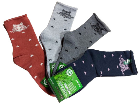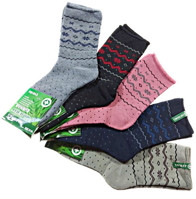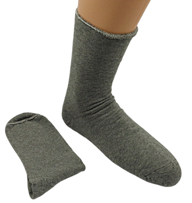 Thermo-Bambus-Socken bestehen aus einem thermoregulierenden Bambus-Viskosematerial. Das Bambus-Frottee-Innenfutter ist flusenfrei, hat eine besonders weiche Konsistenz und sorgt für lang anhaltende Wärme. Die rechte, sichtbare Sockenseite ist glatt gestrickt. Die innere – linke Sockenseite sieht wie ein Frottee aus.